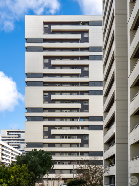 La verticalité postmoderne à l’honneur avec cette réalisation insolite. Gradins sortants et entrants, géométrie et symétrie sont les caractéristiques principales de cet ensemble. Seule la porte de l’ancienne cité des Flamants est conservée côté avenue de Flandre.