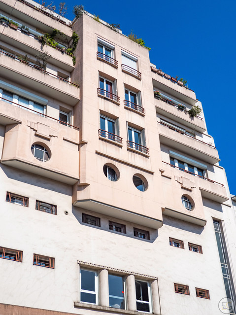 Cet immeuble faisait office de garde-meuble. D’une conception très moderne, il comprend 9 étages dont les 6 derniers sont en gradins. Un rez-de-chaussée porté par une ossature bétons composée de poteaux. Les ouvertures aux étages sont constituées d’étroits bandeaux de pavés de verre. Mais malgré son inscription MH en 2003, les volumes intérieurs ont été transformés en loft et la façade en gradins a fortement été dénaturée par la création de larges baies vitrées.